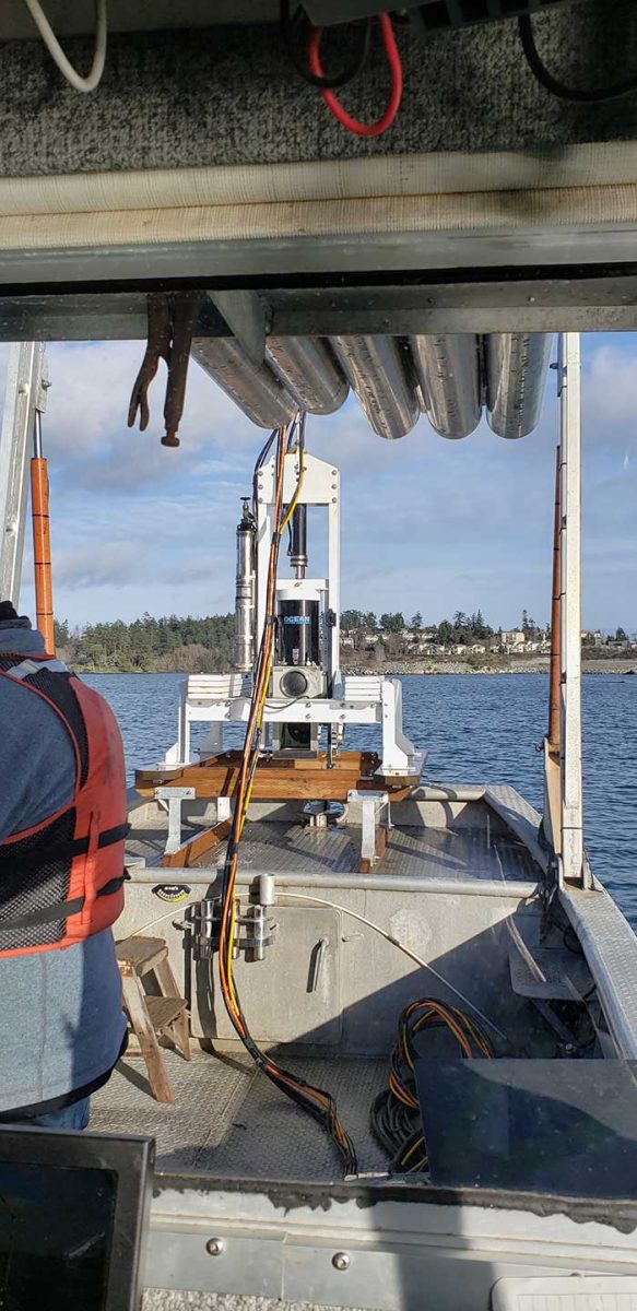 CTI vessels have been chartered for deployment of oceanographic equipment. In this case, the quick connect vibracore sampler is stored allowing full operational deck space for deployment of equipment using the bow-mounted A frame. Clearance to the deck of up to 12 feet (4 meters) is possible. Lifting capacity varies from 1000 lbs. (450kg) to 1500 lbs. (675 kg) depending on the vessel.